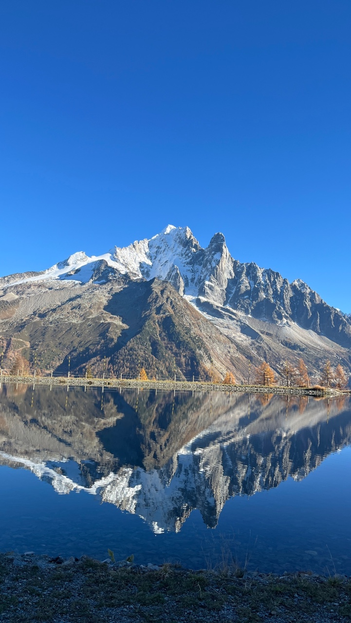 특히 이른 아침, 바람 한 점 없는 시간이면 물 위에 비친 몽블랑이 ‘진짜보다 더 진짜’처럼 보여요.