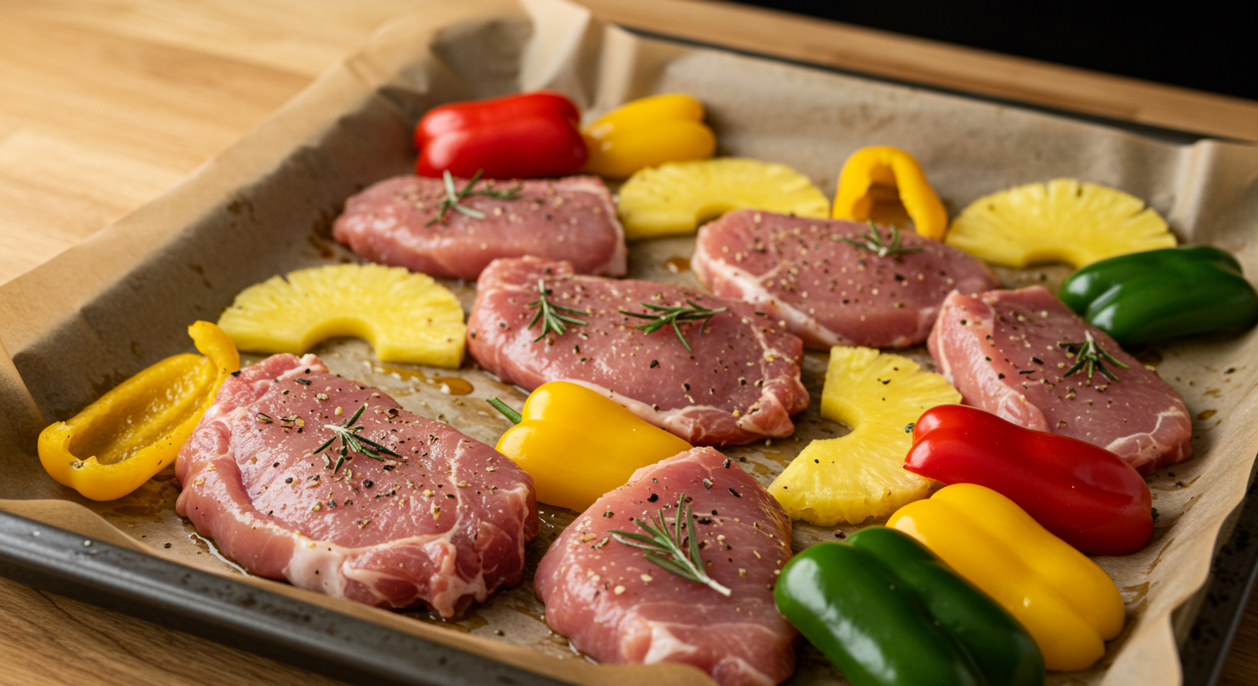 오늘 저녁 메뉴는 ‘돼지고기 안심과 파인애플, 파프리카를 오븐에 구워’