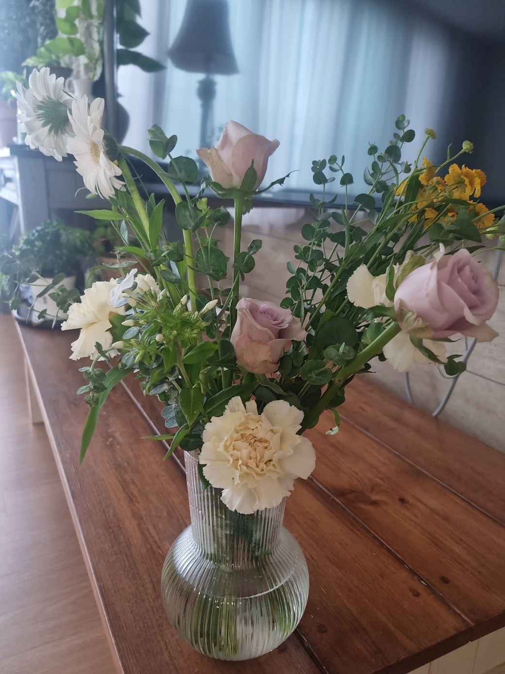 조용히 피어있는 꽃 한 다발, 이게 오늘 내 기분을 조금 바꿨어요.