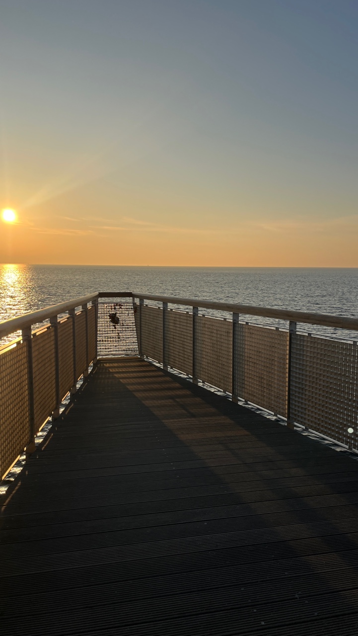 저녁 무렵, 바다 끝 선착장에 섰어요.
